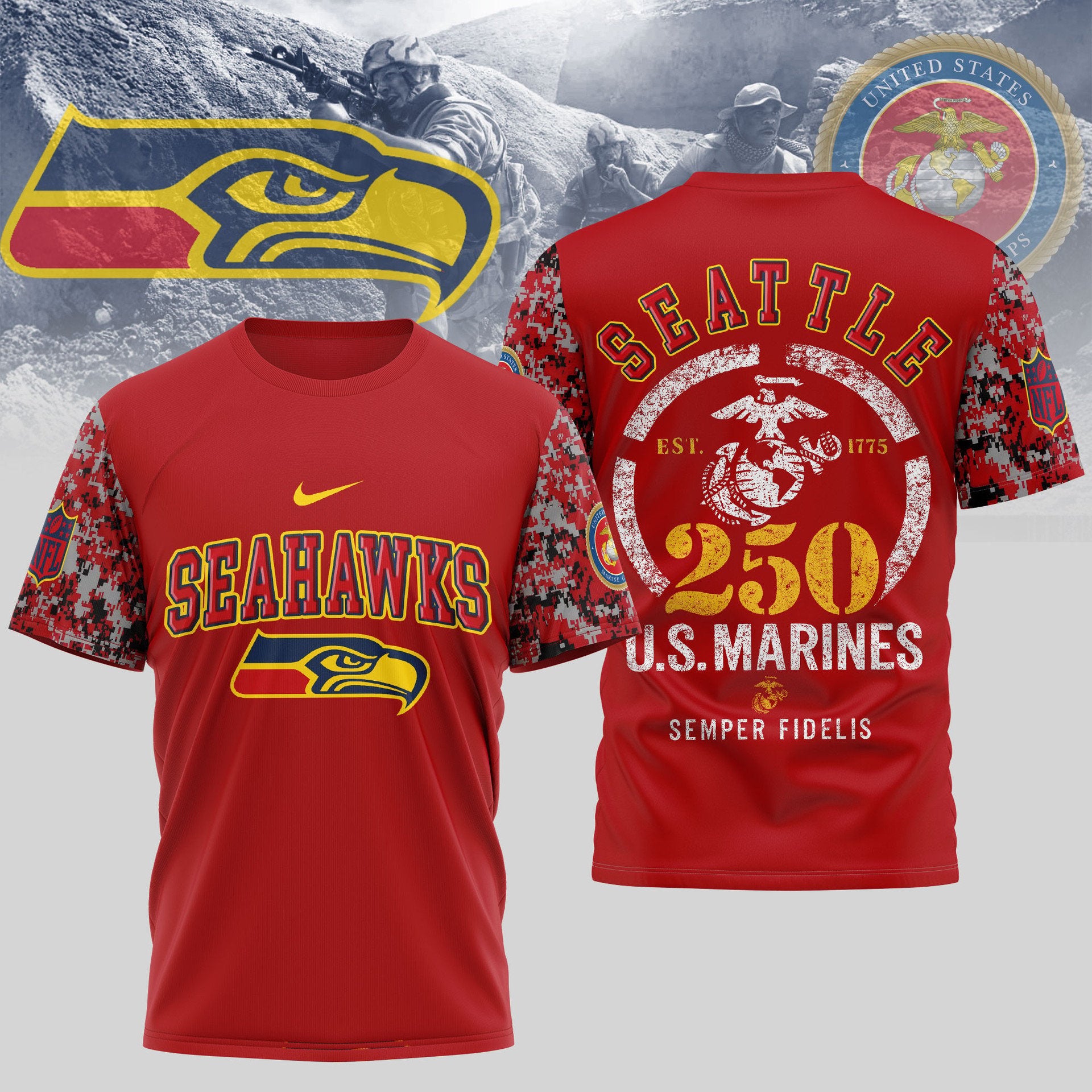 Seattle Seahawks x USMC 250th Anniversary T-Shirt – Blue & Scarlet Limited Edition